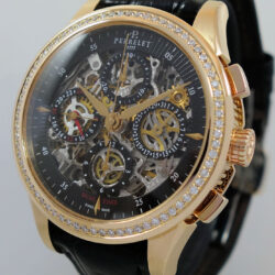 In StockPERRELET 1777 GMT Chronograph 18k Rose-Gold, Diamond bezel & Skeleton dial A3007/7