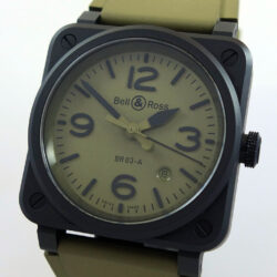 In StockBELL & ROSS BR-03 MILITARY Black Ceramic 41mm, Khaki-dial 40% off Retail