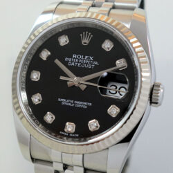 In StockSoldRolex Datejust 36 Steel, Black Diamond-dial 116234 Box & Card