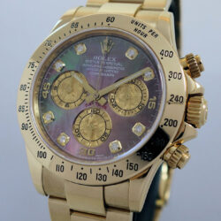 In StockSoldRolex Daytona 18k Gold, 116528 Tahitian Mother-of-Pearl DIAMOND dial Box & Card
