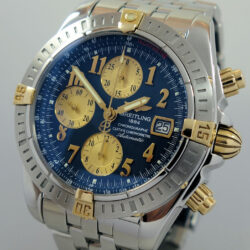 In StockSoldBreitling Chronomat Evolution B13356 Blue-dial Gold & Steel