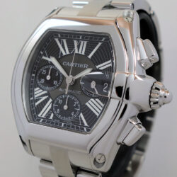 In StockSoldCARTIER Roadster Chronograph XL Steel, Black-dial W62020X6 Box & Papers