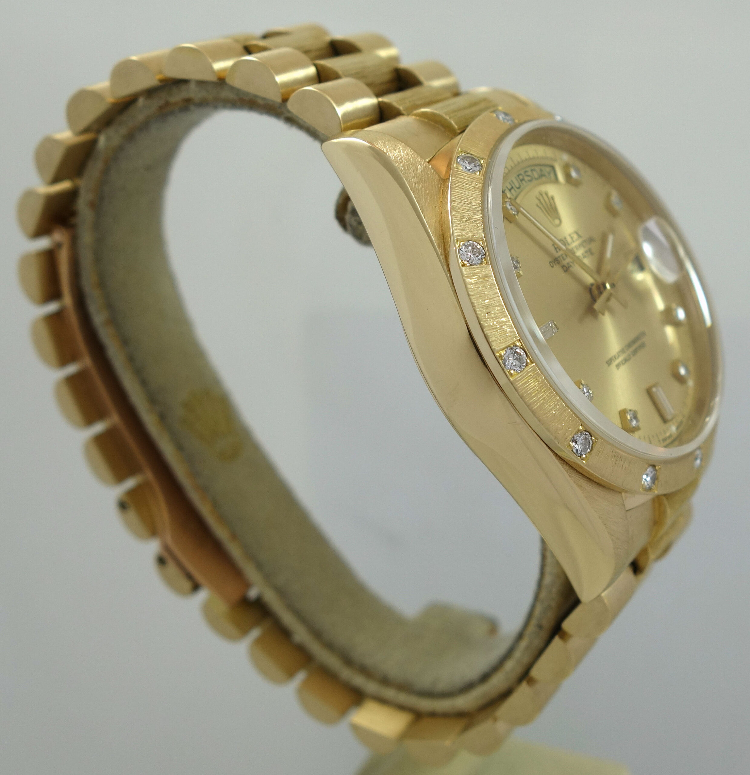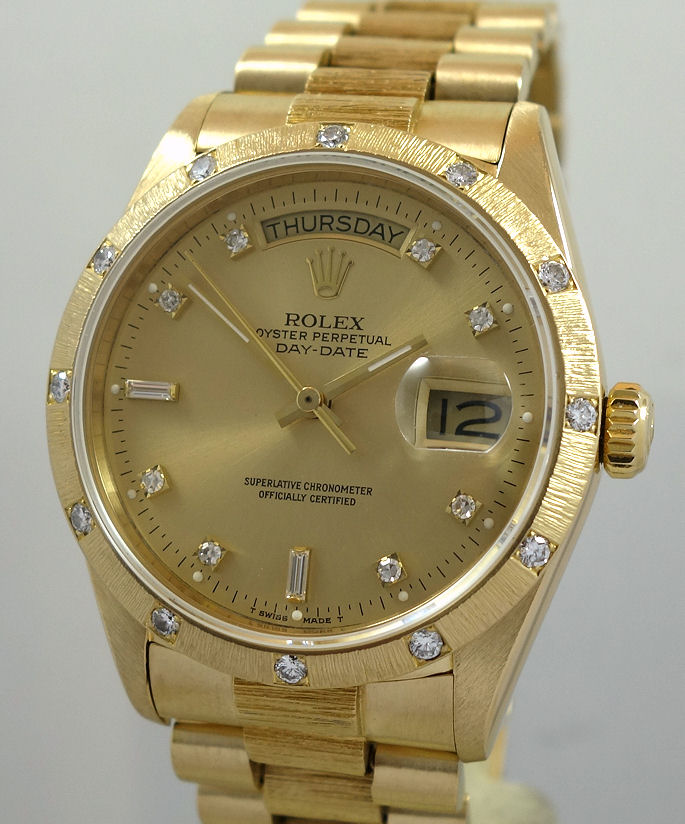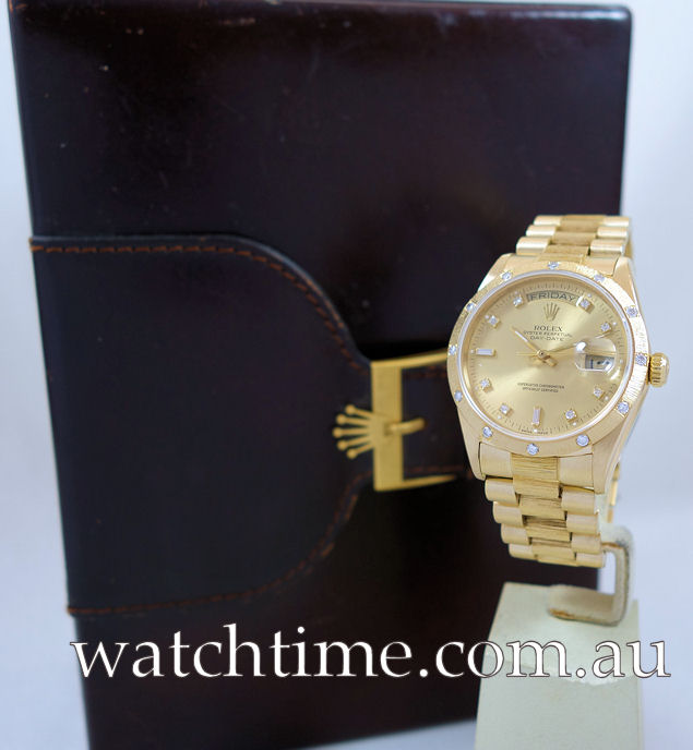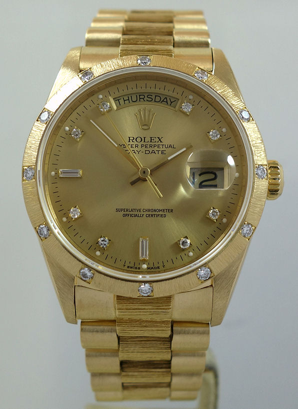 18K ROLEX President DAY-DATE 18108 Bark-finish with Factory Diamond Dial & Factory Diamond Bezel RARE!!!