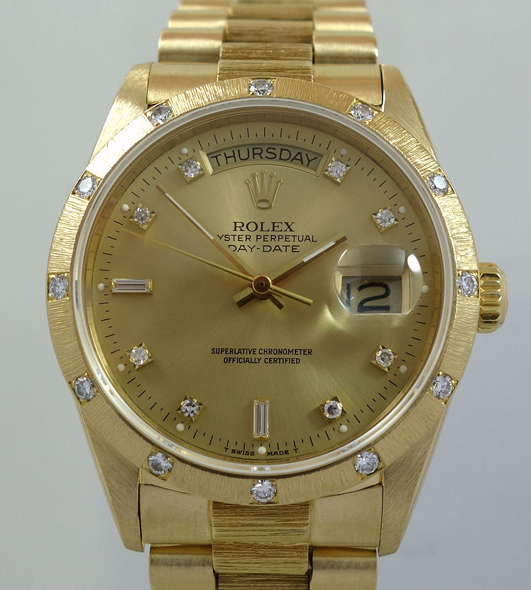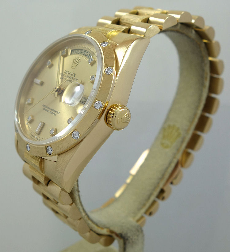 Tag: ROLEX President DAY-DATE 18ct 18108 Bark-finish with Diamond dial & bezel
