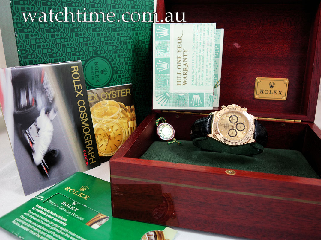 18k Yellow Gold ROLEX Daytona 16518 Diamond-dial Box & Papers
