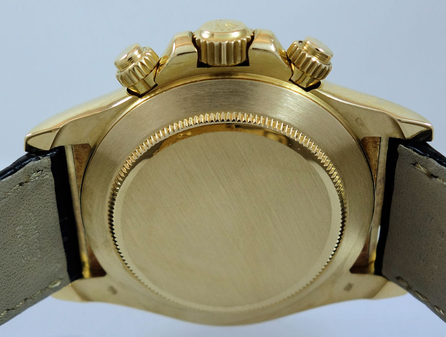 | Case | 18k Yellow-Gold Oyster case with fixed tachymetre bezel and Sapphire crystal glass. |