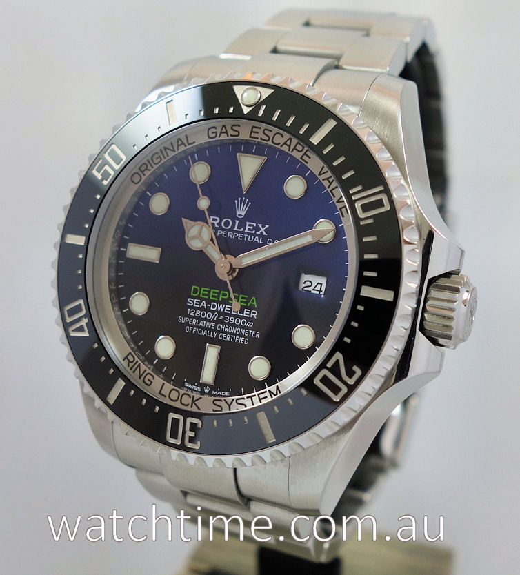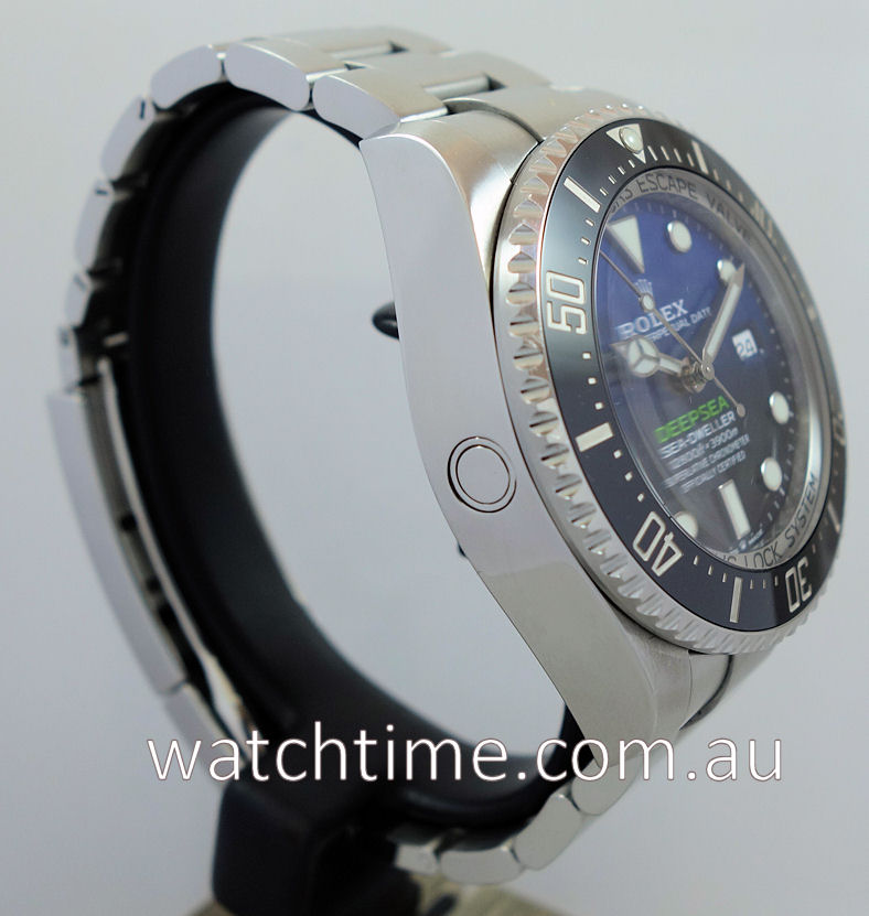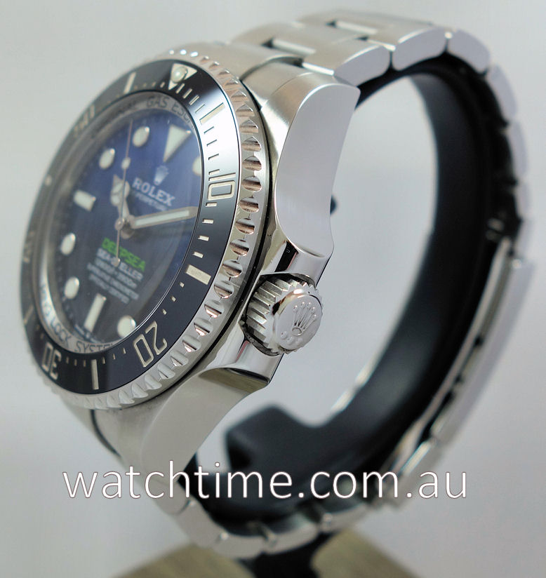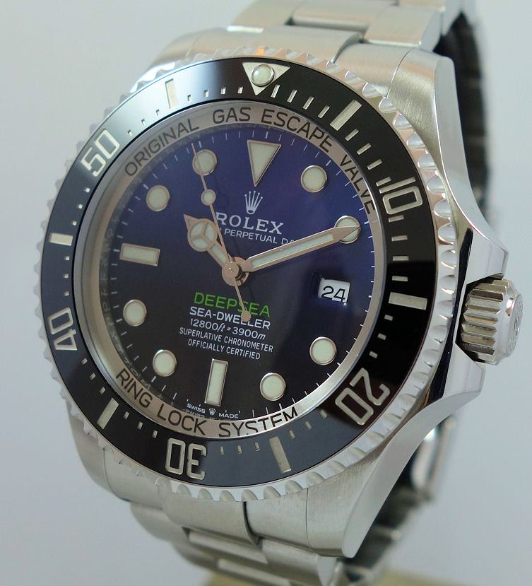 | Dial | Blue to Black dial with luminous hands & hours; DEEPSEA in green. Date at 3 h pos. |