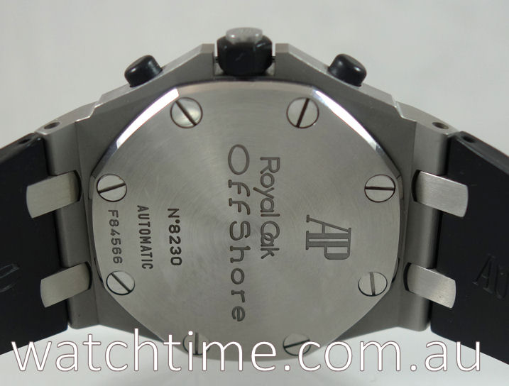 | Case | Brushed stainless-steel case, black octagonal bezel secured with eight screws, matching rubber clad pushers and screw-down winding crown. Sapphire crystal glass. |