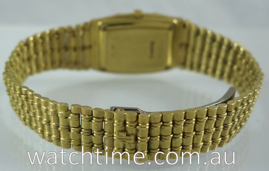 | Dial | Gold with horizontal stripes, applied dot minute-markings and two-toned hands. |