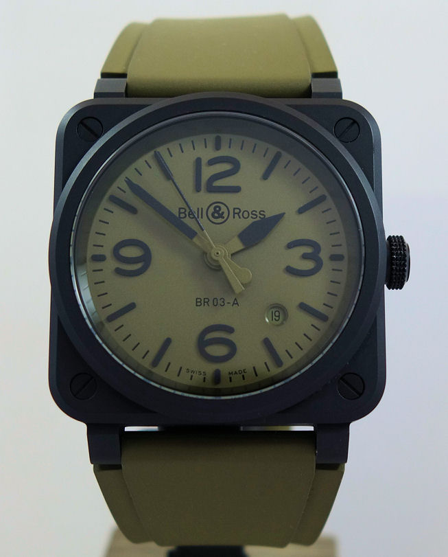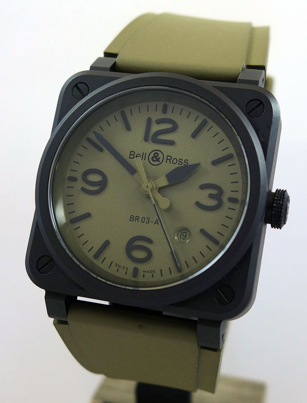 BELL & ROSS BR-03 MILITARY Black Ceramic 41mm, Khaki-dial 40% off Retail