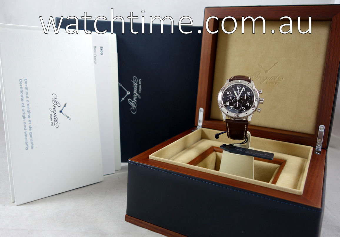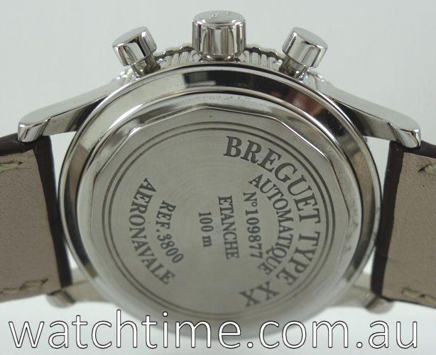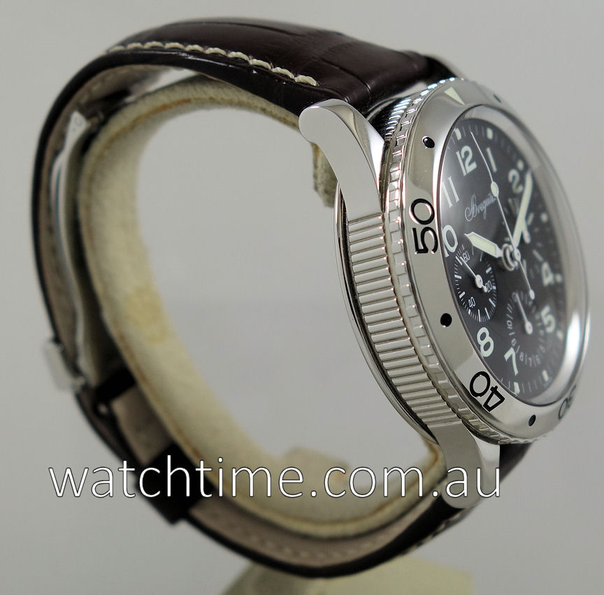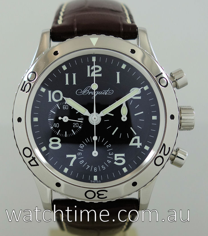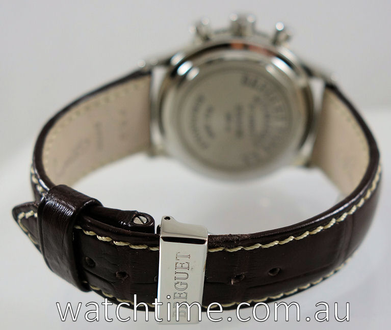 | Movement | Automatic, Breguet caliber 582 (based on the Lemania caliber 1350, but with the addition of a flyback function). |