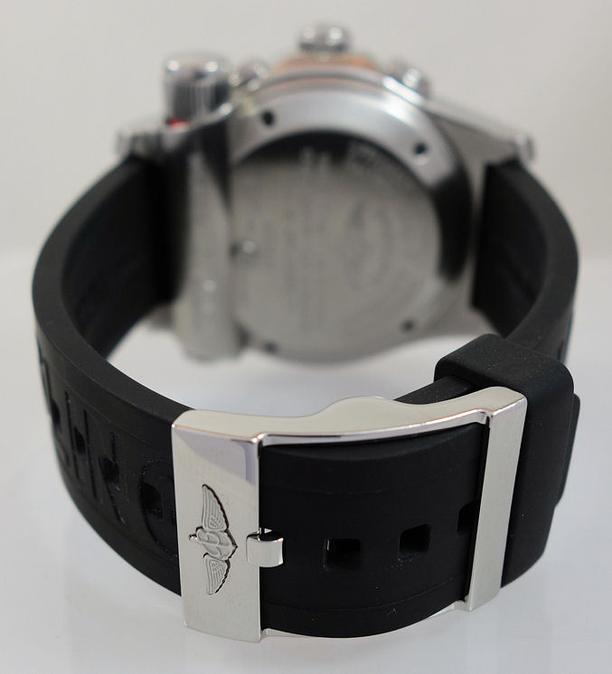Polished steel with bi-directional rotating bezel, screw-in crown and transmitter. Sapphire crystal glass.