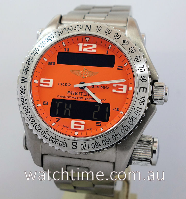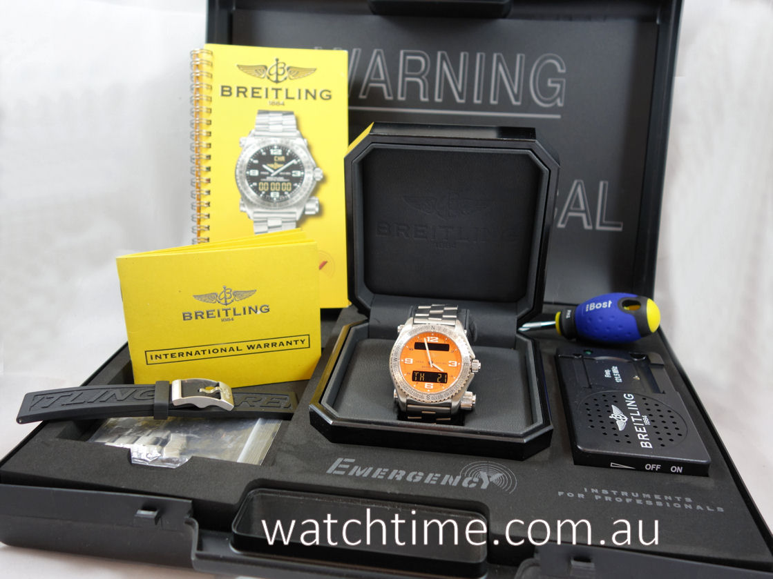 BREITLING EMERGENCY SuperQuartz Titanium E7632110 Orange dial, Full set!