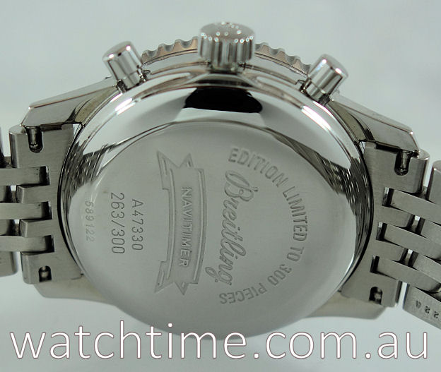 Limited edition of 300 peices in steel and named the “Navitimer 02”. This piece is numbered 263/300.