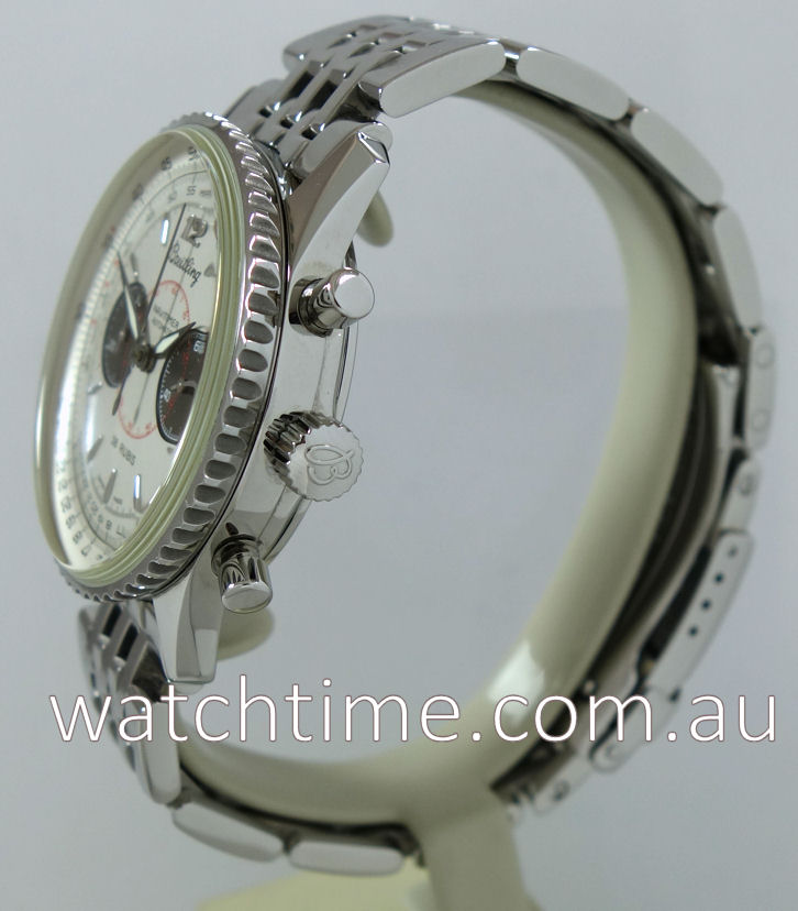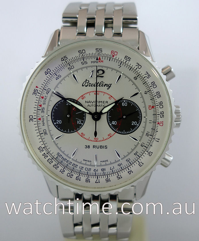 | Band | Polished stainless-steel Navitimer bracelet with flip-lock clasp. |