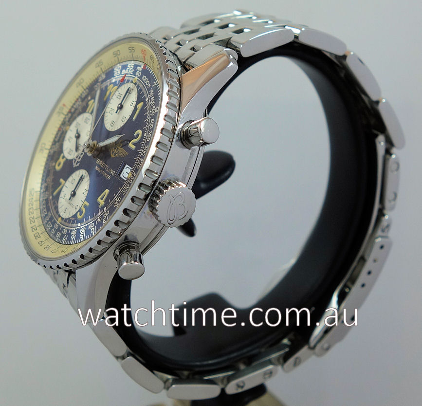 | Band | Stainless-steel Navitimer bracelet with flip-lock clasp. |