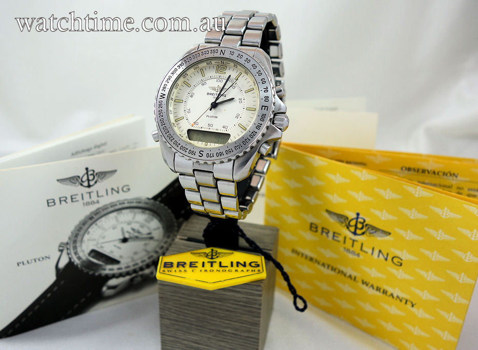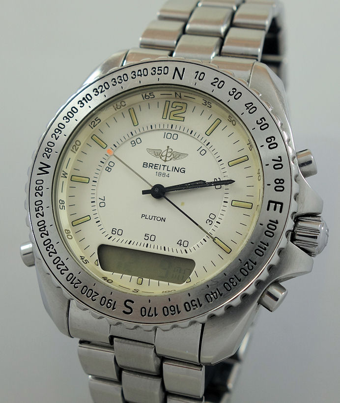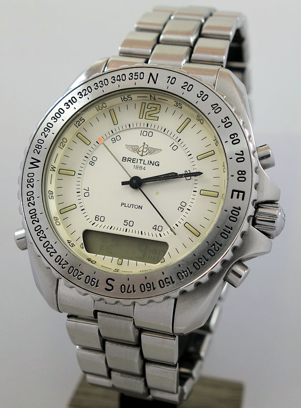 In 1997, the PLUTON was moved from the Navitimer series to the Professional series, and then replaced by the Intruder, which is part of the Aeromarine series.