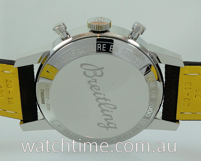| Movement | Caliber Breitling 23 Movement self-winding mechanical Power reserve approx. 48 hrs Chronograph 1/4th second, 30 minutes Vibration 28,800 v.p.h 27 jewels |