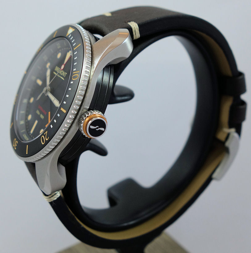 Automatic, Bremont calibre 11 ½”’ BE-93-2AV Chronometer. Power reserve 38 hours.