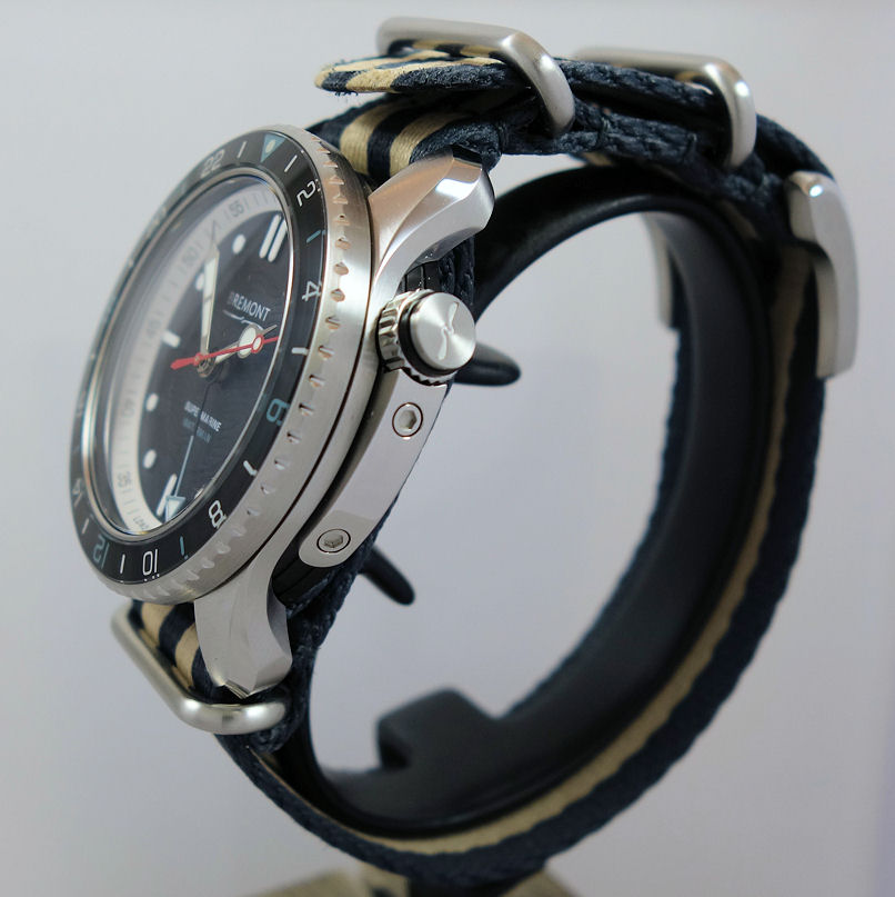 stainless steel Bremont Trip-Tick® case with uni-directional bezel. Sapphire bezel insert with 24 Hour markings in Super-LumiNova®. Sapphire crystal glass.