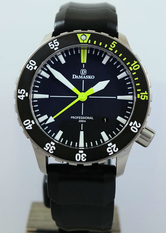 Damasko DSub1 Dive Watch – 42mm, Black Dial, Yellow Accent Color, Submarine Steel. RRP $3,060