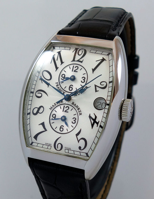 | Dial | Silver guilloche with exploding Arabic hours, blued-steel hands for hrs, min, secs. Additional time-zones in sub-dials at 6 and 12 and Date at 3 pos. |