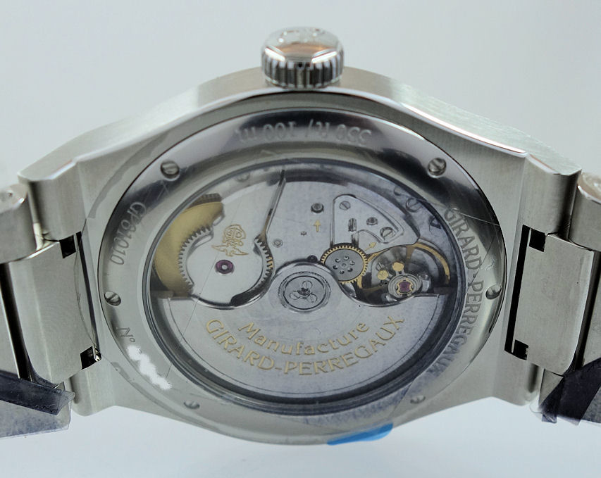 | Movement | Automatic, manufactured in-house GP Calibre 01800. The see-through case-back reveals the oscillating weight decorated with Côtes de Genève. |