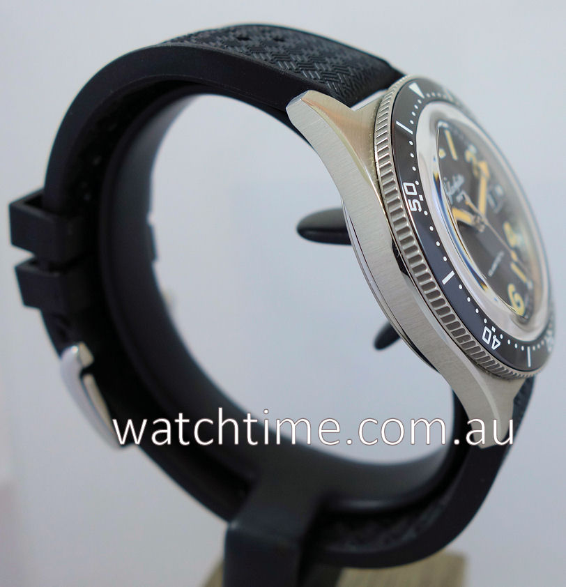 | Case | Stainless-steel with screw-down crown and engraved case back. Uni-directional rotating bezle with ceramic inlay. Sapphire crystal glass. |