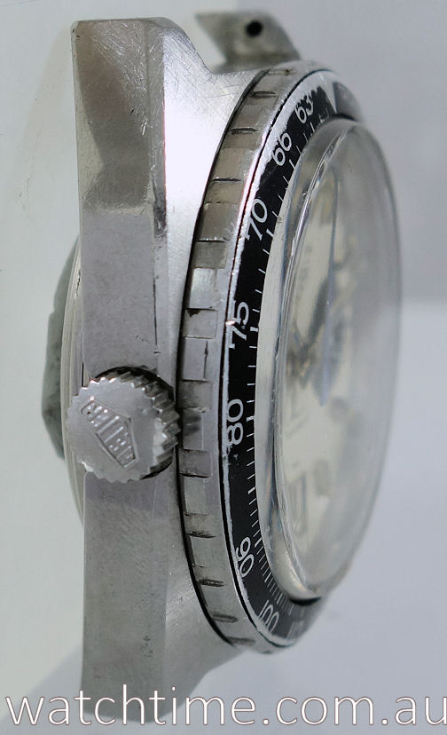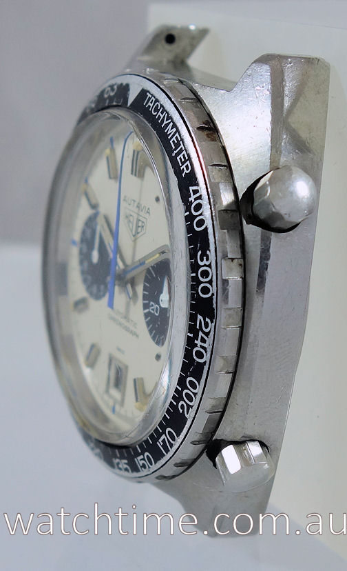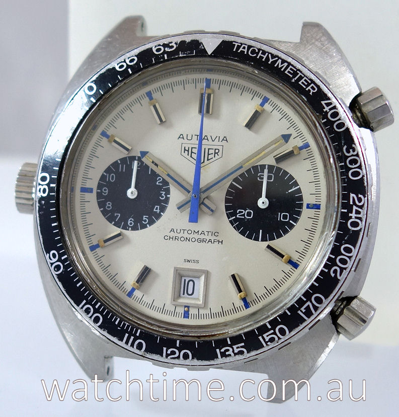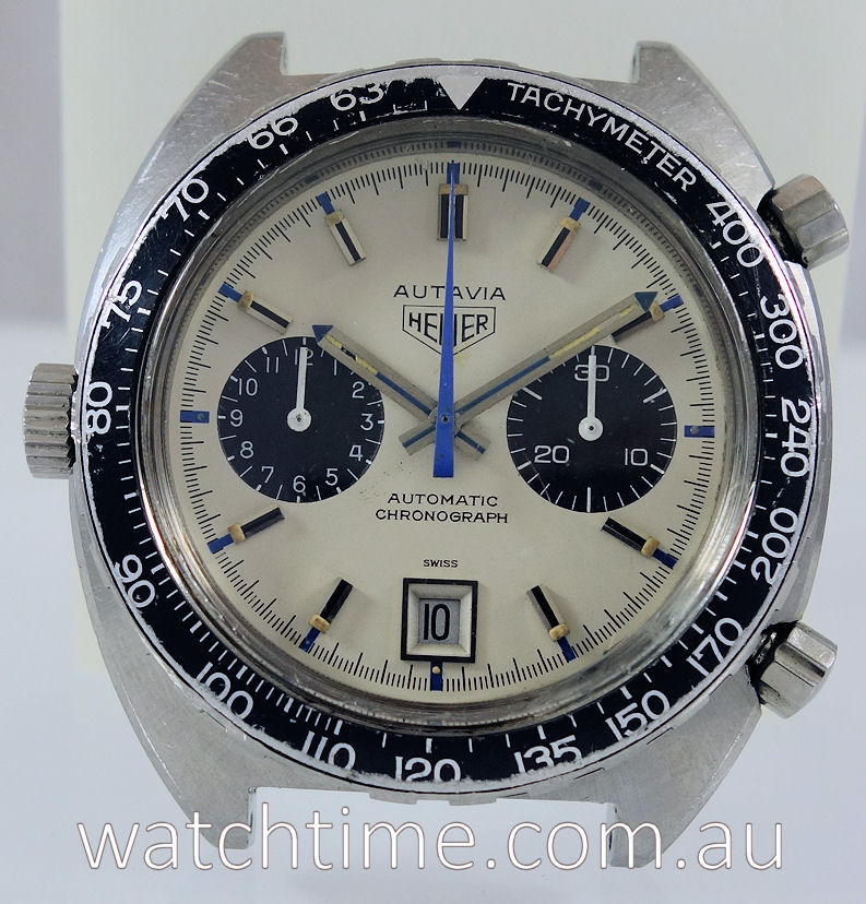 This 1970s HEUER “Jo Siffert” Autavia 2-dial Chrono is COMPLETELY ORIGINAL – no replacement parts, has not been re-polished.