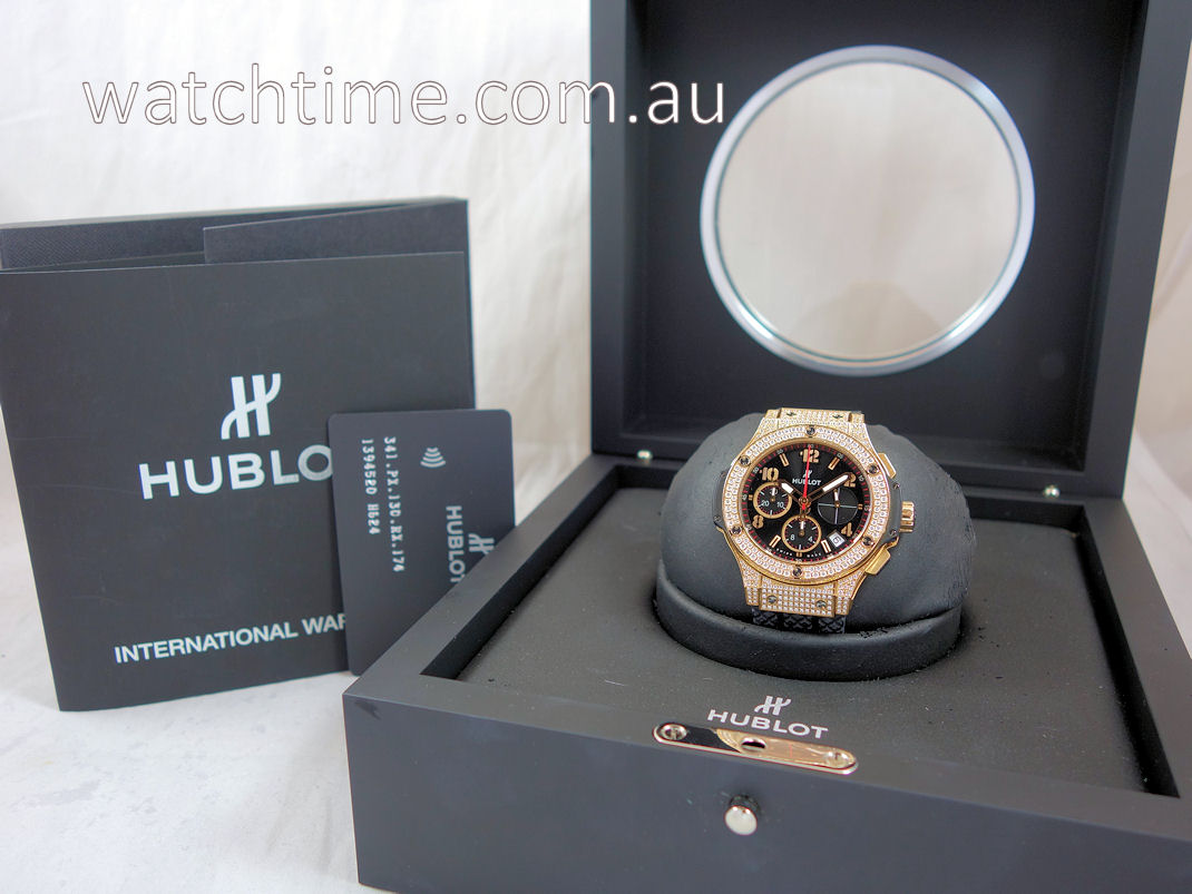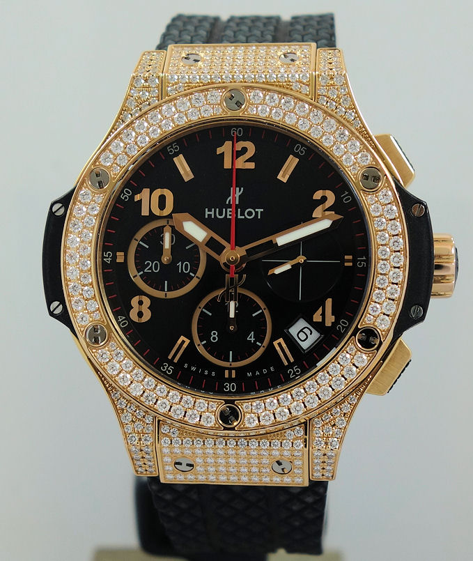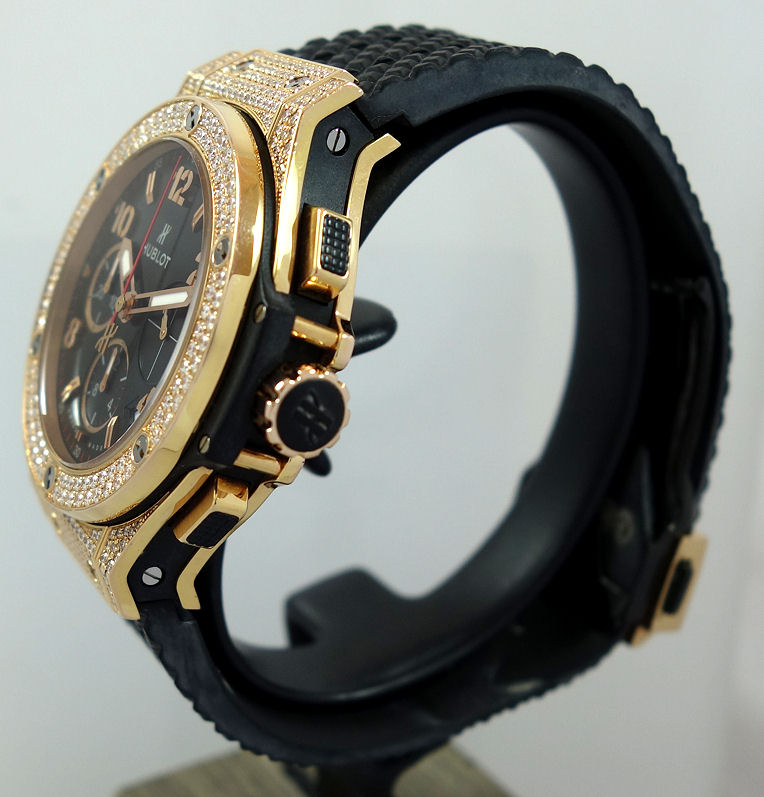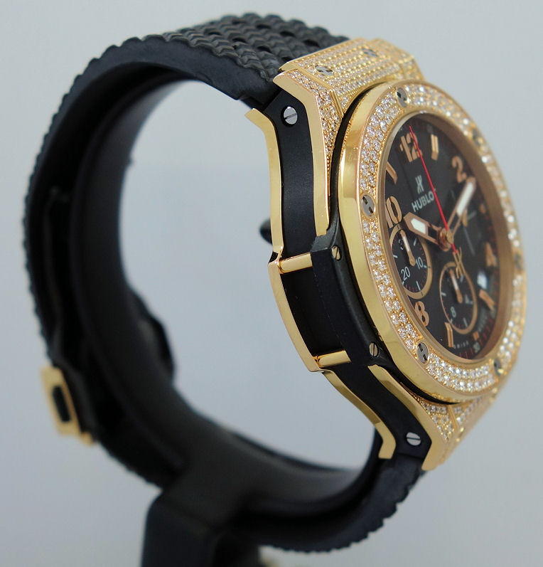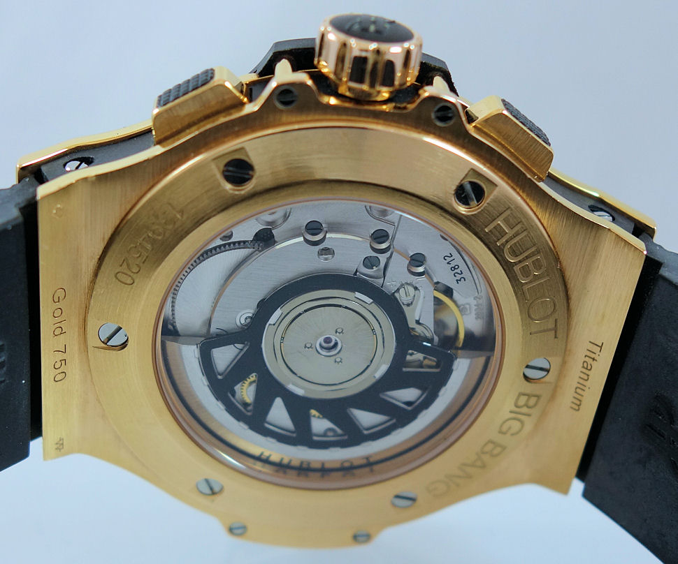 | Case | 18k Gold case pave-set with 198 Diamonds (1.12cts). 18k Gold Bezel fixed with 6 H-shaped titanium screws, also pave-set with 114 Diamonds (1.18cts). Sapphire crystal glass & display back. |