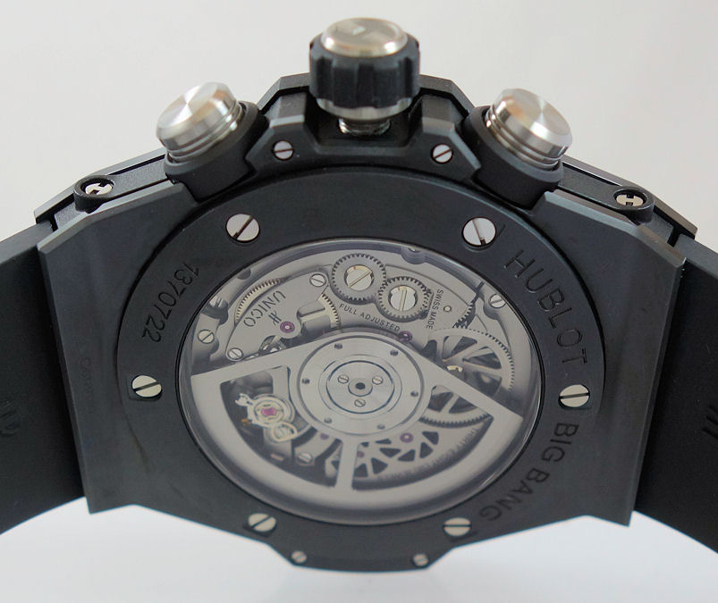 | Case | Black Ceramic, bezel fixed with 6 H-screws. Sapphire crystal glass and exhibition back. |