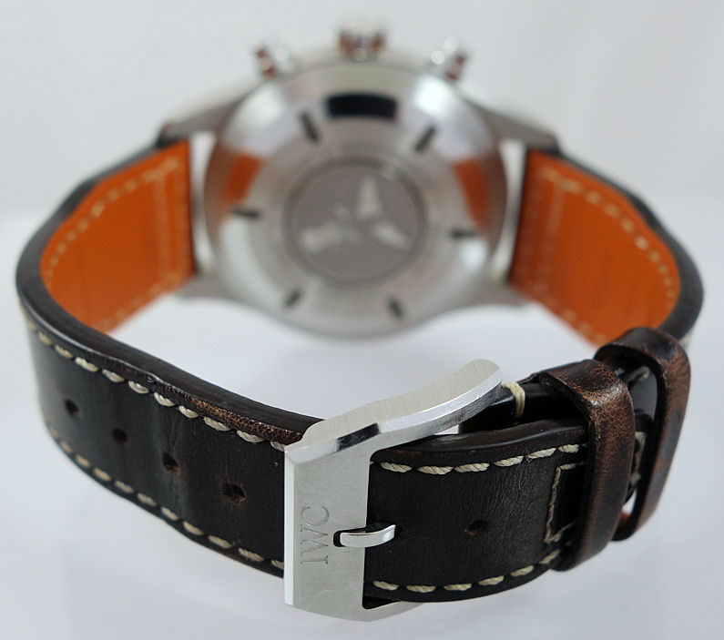 | Band | Brown Calfskin strap with white stitch and steel folding buckle by IWC. |