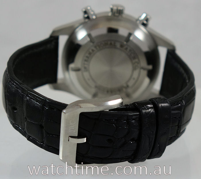 | Band | Black Alligator and steel pin buckle by IWC. |