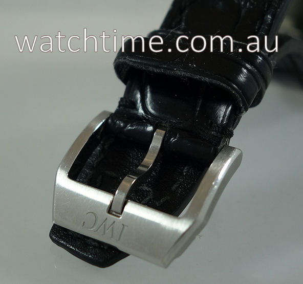 | Band | Black Alligator leather and steel pin buckle by IWC. |