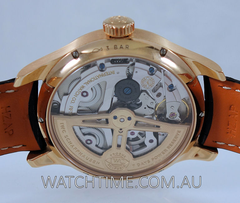 | Movement | Automatic, IWC-manufactured Calibre 52610 with Pellaton winding, Gold Rotor, Côtes de Genève and perlage finishing. 168 hours / 7 Days Power Reserve. |
