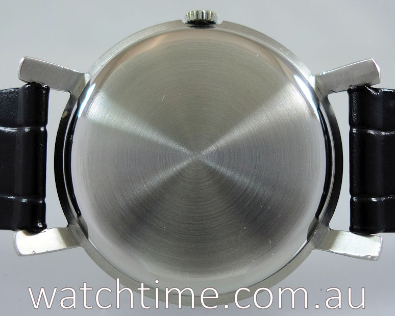 Fine stainless-steel case with stepped bezel, inset crown, flared lugs and plexiglas.
