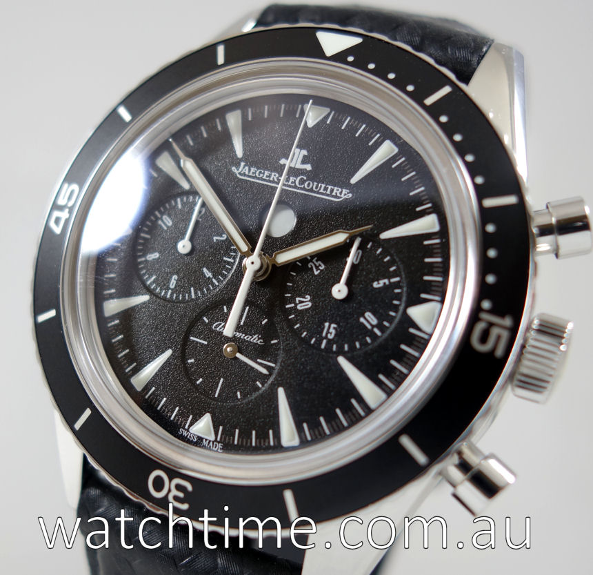 Inspired by the 1959 Memovox Deep Sea, the Jaeger–LeCoultre Deep Sea Chronograph steel diving watch offers a chronograph movement with three counters in a historic case.