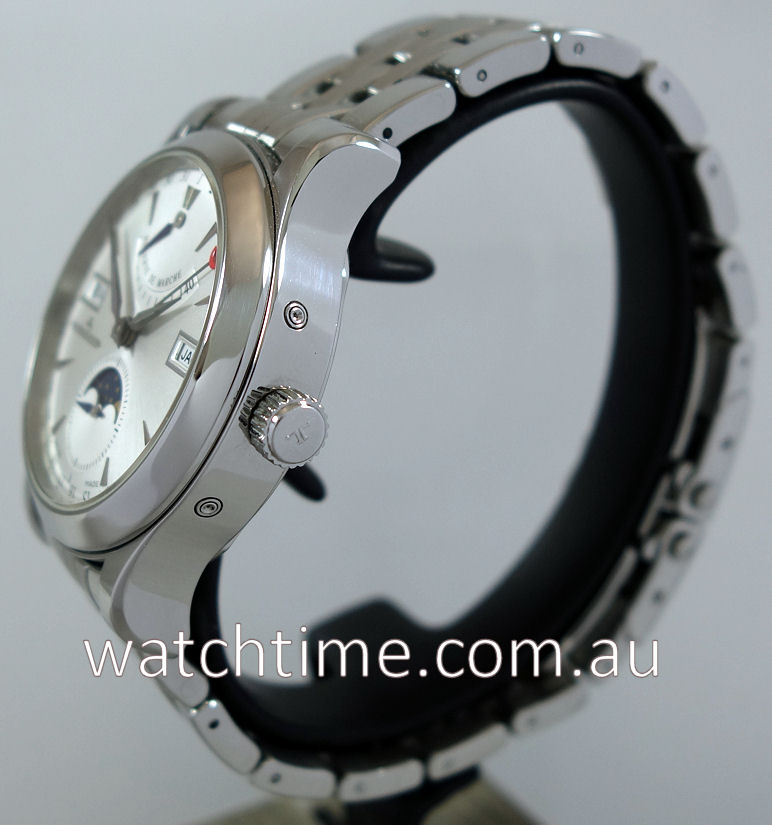 | Functions | Hours, minutes, small-seconds, day, date, month, power reserve and moonphase indicators. Water resistant at 50 m. |