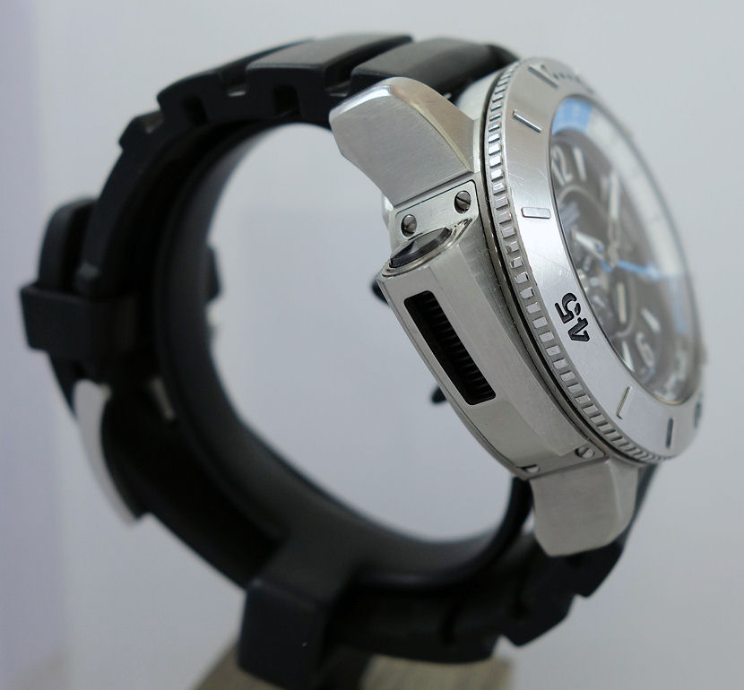 | Case | Titanium case with depth guage, compression key locks on double crowns and uni-directional rotating bezel. Camberred sapphire crystal with anti-reflective coating. |