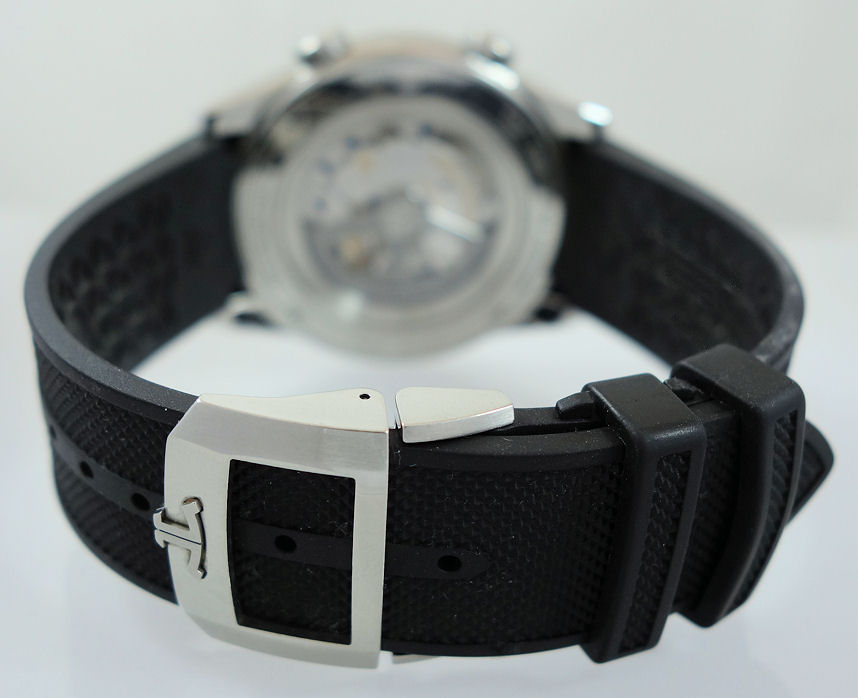 Black rubber strap with folding clasp. Plus Brown leather (used lightly).
