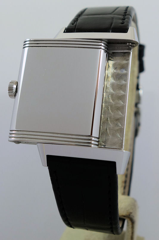 | Case | Polished stainless-steel rectangular, reversible case with sapphire crystal glass. Solid, unengraved back. |