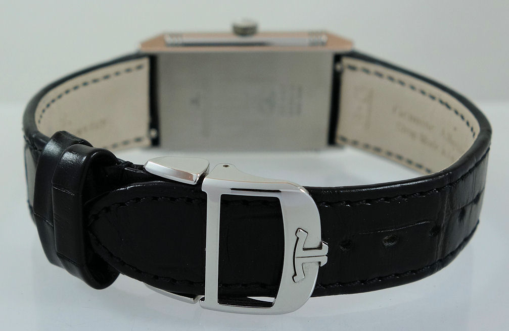 | Band | Black Alligator leather and steel folding clasp by JLC. |