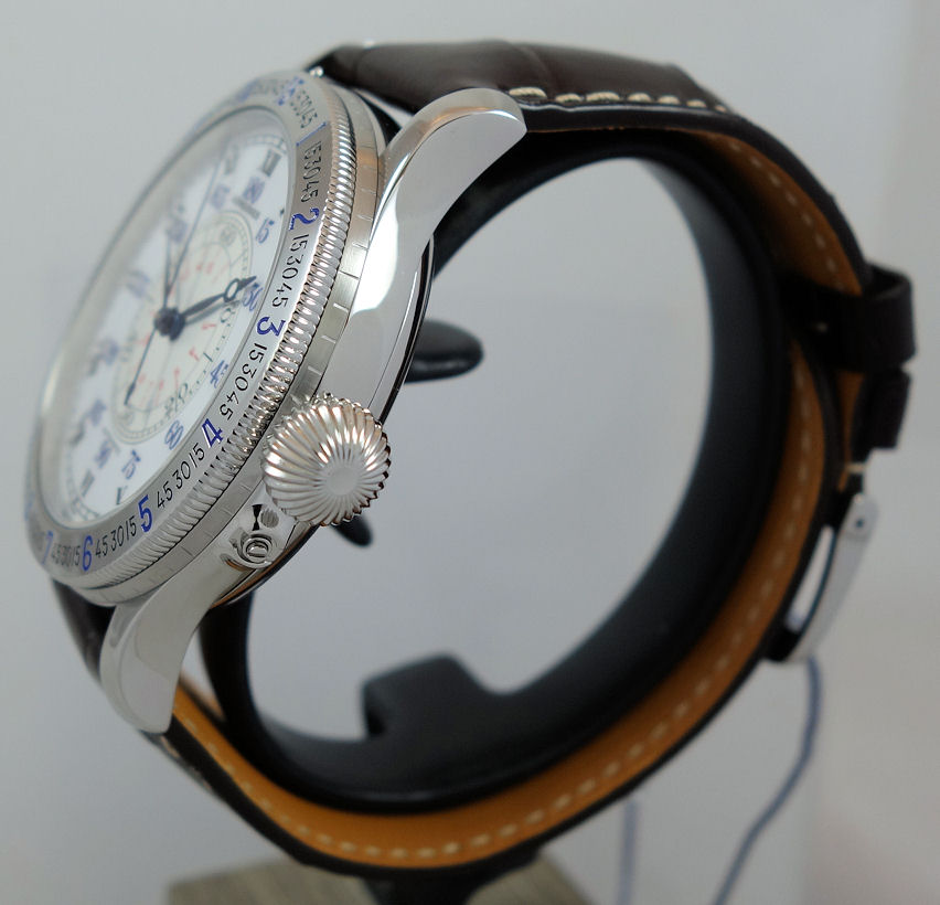 | Functions | Hours, minutes, seconds, internal rotating silvered dial for synchronization of the seconds hand with a radio time signal and rotating bezel to adjust to daily variations of the equation of time. |