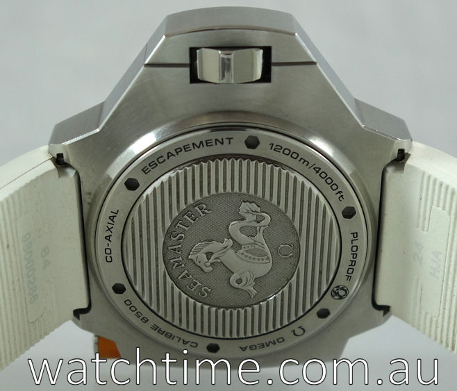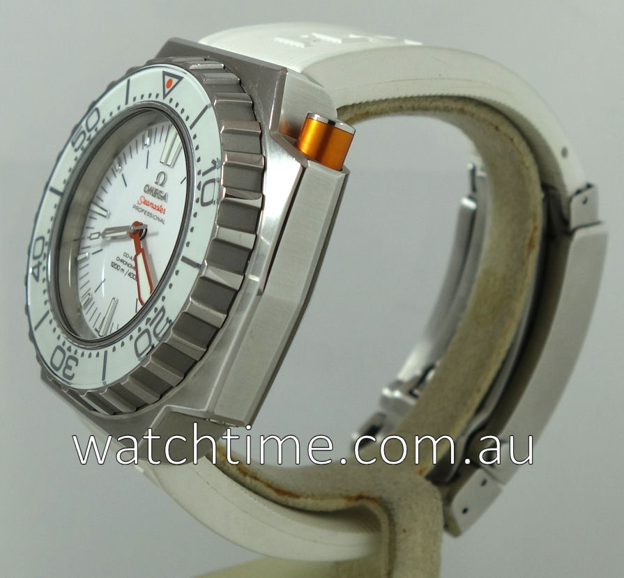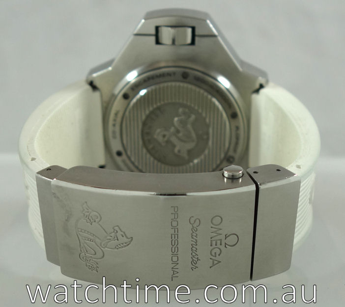 | Band | White Rubber strap with PLOPROF stamping and steel adjustable clasp by Omega. (24mm width). |