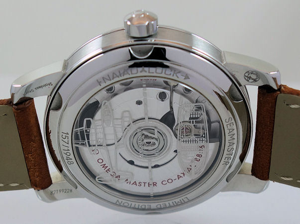 The caseback features a flat sapphire crystal which has been laser-engraved and lacquered by hand with a 70th Anniversary logo, a Chris-Craft boat and Gloster Meteor aircraft. This is in tribute to the aviators and mariners who all placed their trust in OMEGA’s timepieces during World War II.