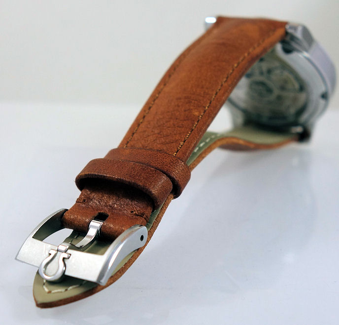 | Band | Tan and Navy leather straps with steel pin buckle. Plus grey Nato strap; supplied with fitting tool. |