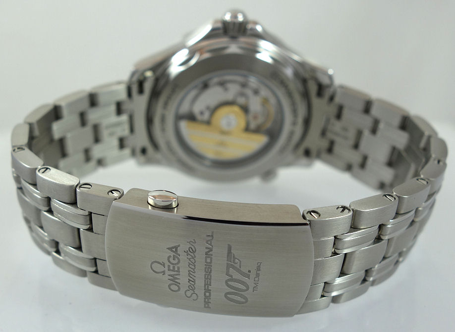 | Band | Stainless-Steel bracelet with specially engraved 007 folding clasp. Additional (UNUSED) 5-stripe blue, red & grey polyamide Nato Strap. |