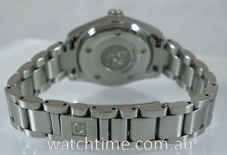 | Band | Satin-finish stainless-steel bracelet with folding clasp by Omega. |