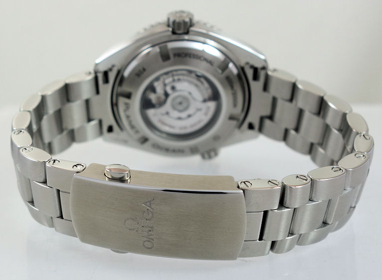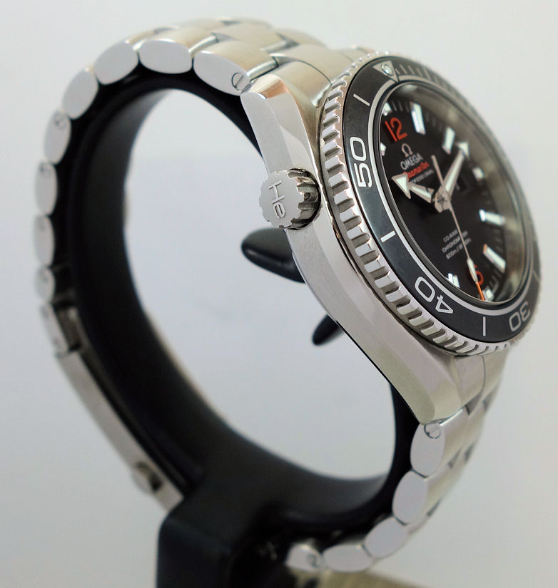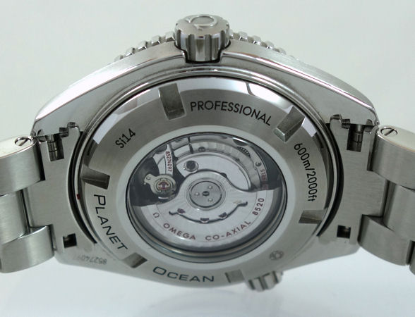 The OMEGA Seamaster Planet Ocean 600M is water resistant to 600 metres / 2000 feet / 60 bar, and has a helium-escape valve. The OMEGA Co-Axial calibre 8520 at the heart of this timepiece can be seen through the transparent caseback.