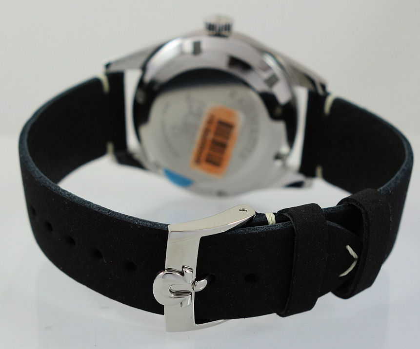 Black suede with steel pin buckle. Additional steel bracelet and NATO strap.